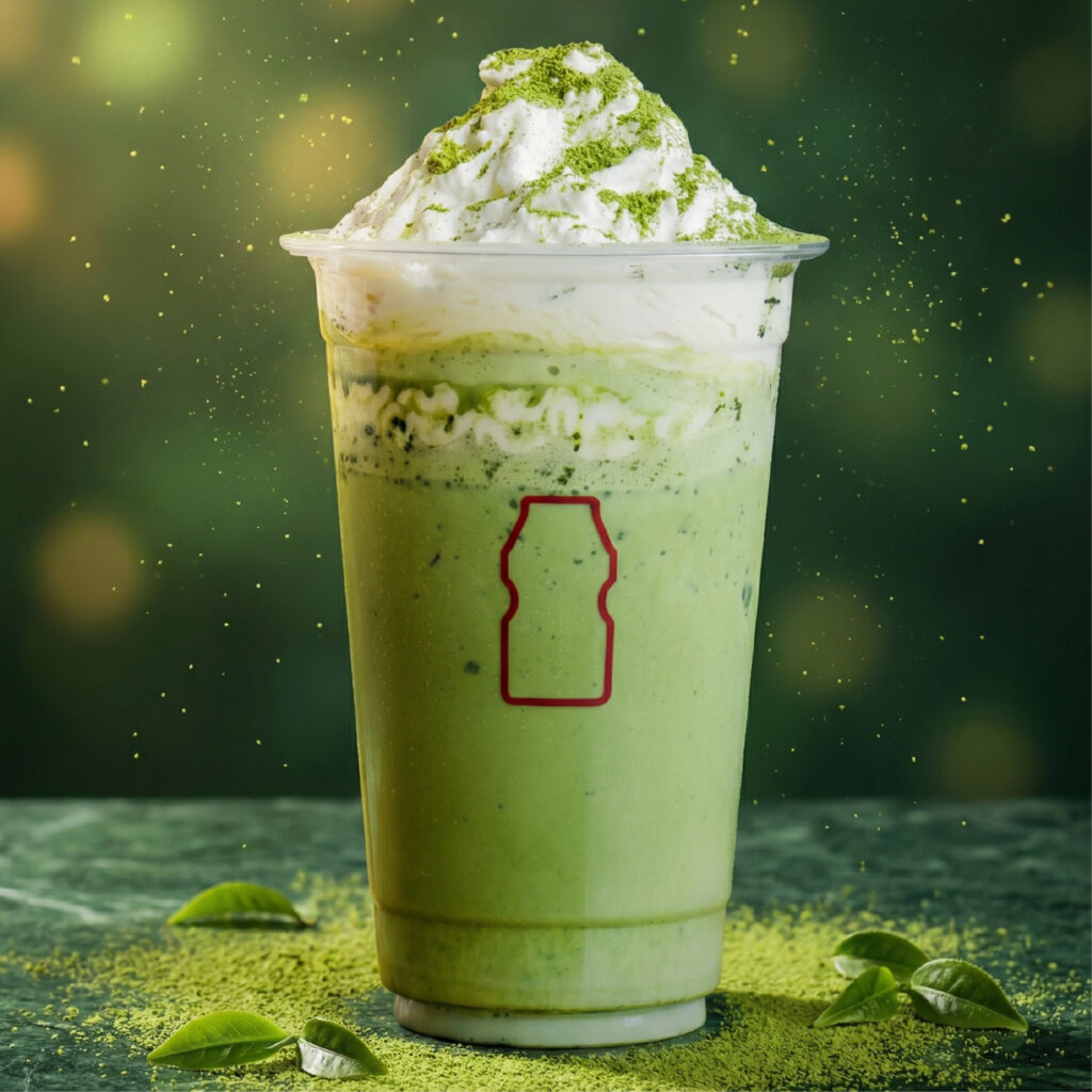 ヤクルトの青汁「大麦若葉」をクリーミーなミルクでラテに仕立てました。
